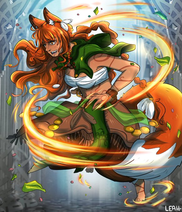 Leah, my fox Laguz oc, in a fake screenshot from Fire Emble: Heroes :3