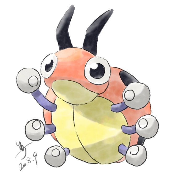 線も水彩風の方がやっぱりいいかな? #レディアン #ポケモン図鑑 #ジョウト地方 #Pokémon #イラスト #お絵かき #一日一絵
