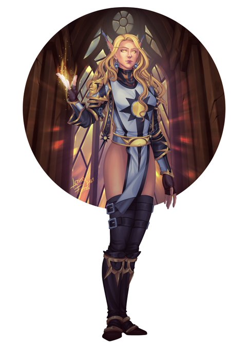 @iamspectr00m Thank you for the opportunity! I've had the immense pleasure of you drawing one of my ladies already, so I figured I'd try with another! My Argent Cleric, Eldaras.