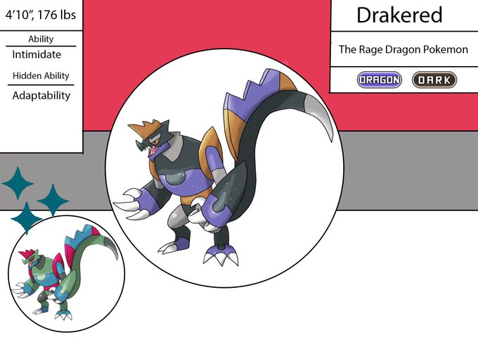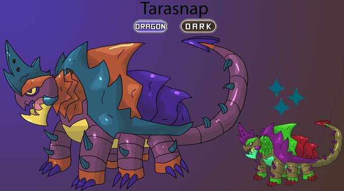 Revamped an old regional evolution to help shake off the rust; reintroudcin' Tarasnap, an evo for a Dragon/Dark Drednaw line. Revamp on the left, original on the right.