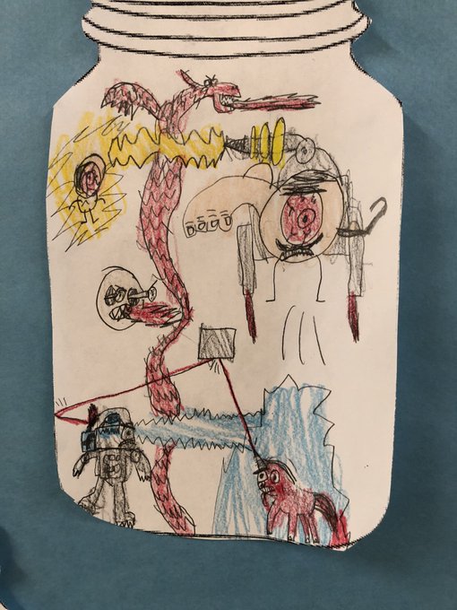 Having an amazing time talking about character, ideas, and writing a good story with the creative students at Green Meadow Elementary today. Check out what’s in their idea jars!