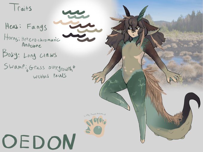 Recent artwork of my newest character Oedon, my little bog creature