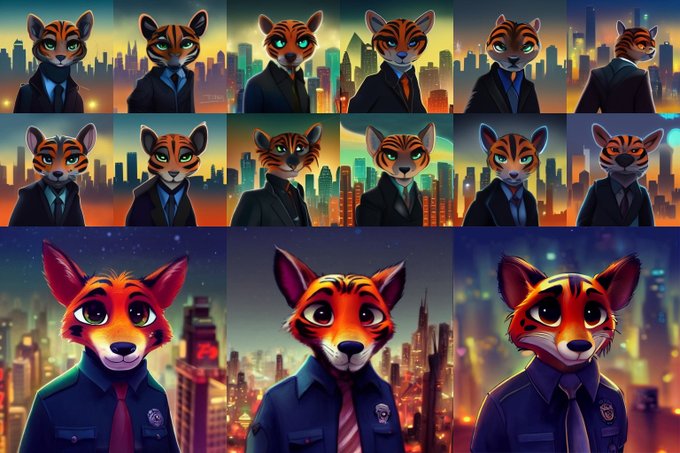 Many people are already using neural networks to create images and more. I decided to experiment. Bottom line: a couple of hours to create an acceptable version in Midjourney, and a few hours of work in Photoshop/ClipStudio to draw your character based on the resulting image🐯