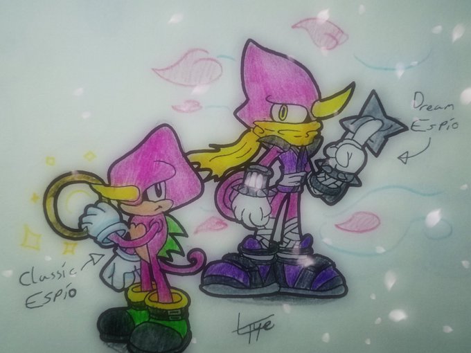 I made it quick but I did draw my interpretation of Modern Espio for comparison, also, I did finished the last sketch from the Mania Knuckles Stream, hope you enjoy, and keep up the good work 😋👍 #MugidrawsClassicEspio #mugidrawsmaniaknuckles @MugiwaraMikey @AxelLazuli