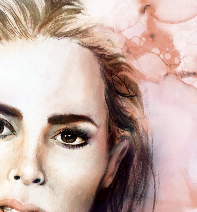 I just 'graffitied' over my portrait painting of the beautiful #SylvieMillstein (and it was fun!) Which one do you prefer? @hellessyny