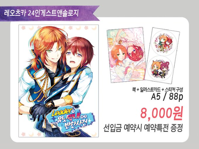 [RT♥] 레오츠카 24인 게스트앤솔로지 현장수령예약 및 선입금 통판예약중입니다(15일까지) 글 7분, 만화 9분, 일러스트 8분이 함께해주셨습니다! 예약폼은 이쪽> https://t.co/bHULZQarQ3