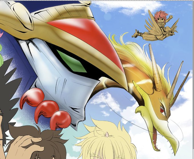 ワタルのバースデーはPC触れないので、フライングおめでとう用に前にラクガキで描いたやつを色塗ってみてますが龍神丸と金龍塗っただけで時間切れになりそう>x<