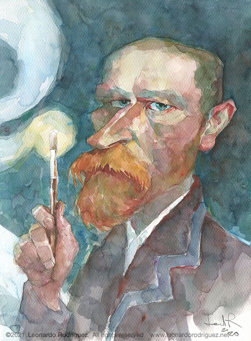 Esta es un particular versión de #vincentvangogh Un día como hoy nace el #30deMarzo de 1853 #birthday #StarryNight #selfportrait #watercolor