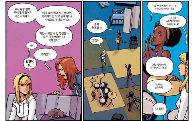 여기 피터는 자기도 초능력갖겠다고 꼴받아서 혈청마셨다가 리저드되고 저세상간지오래며 그웬의 스파이더ㅡ아픈손가락이 그시절에 피터를 제대로 못 돌아본거라는 설정 그리고 피터가 없어서 둘이서 이런사이임