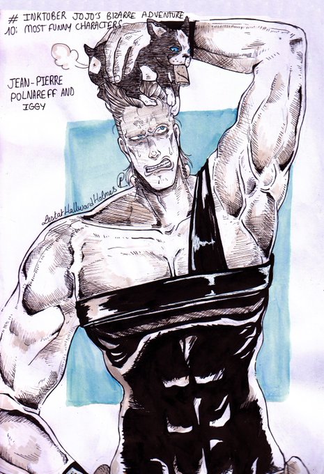 Octobre 2017, suite et fin des inktober Jojo de l'an passé ! Alors... Kira, j'avoue j'aime encore l'idée, mais dieu que j'avais totalement foiré la tronche de Kosaku 🤣 Polnareff fut mon premier dessin de monsieur musclé ( ͡~ ͜ʖ ͡°) #jojo_anime #JoJosBizarreAdventure