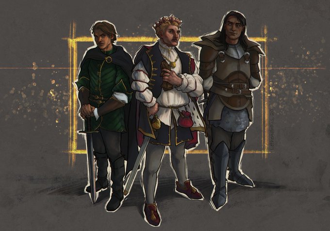 An art commission - illustration for an original story featuring three brothers and princes. From left to right: Einya, Eshant and Forthan.