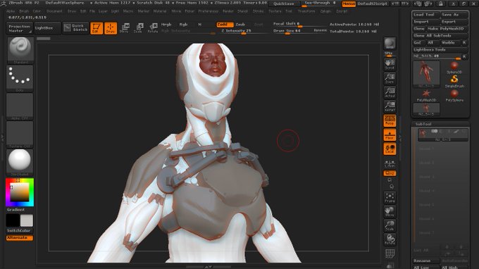Zbrush model,3Dmax render “ghost in the shell”(G.I.S) consciousness transfer armor