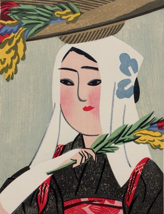 昭和生まれならこのタッチ何処かで見たことがあるのでは?画像は前川千帆(1960没)の作品です。読売新聞社に努め漫画を描きながら版画を制作。日本を代表する近代版画家となりました。右下画像は野草を集める前川千帆氏ご本人。季節の野草を食べるのが趣味だったそうで、その様子を描いています。