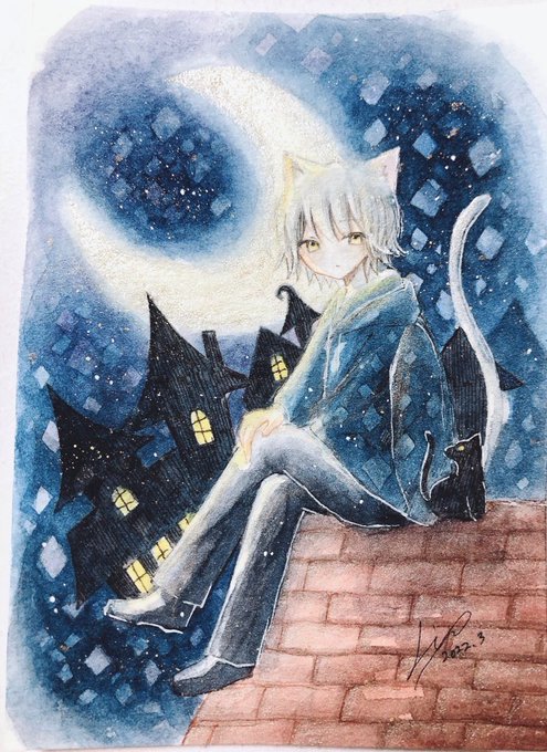 #猫の日 夜と月と猫の組み合わせが最高に好きなんです...🐈⬛🌙✨