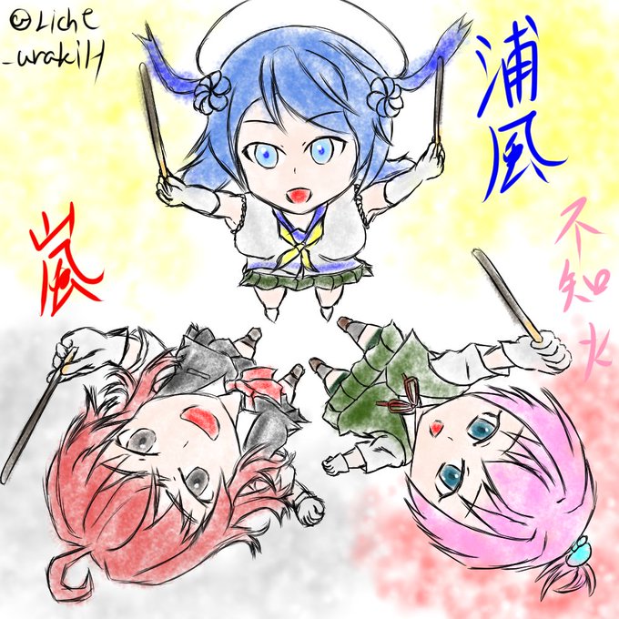 #艦これ版深夜の真剣お絵描き60分一本勝負 #艦これ版真剣お絵描き60分一本勝負_20161111 90回目 嵐 浦風 不知火 #ポッキーの日