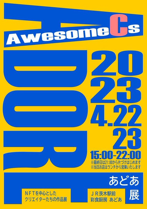 「あどあ展~NFT AwesomeCs~」に参加させていただきます😄❣