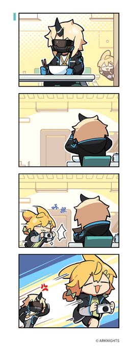 🤤🤤🤤 (P1是方舟联动KFC时出的官方联动小漫画,P2P3是刚出的123罗德岛) 恭喜克洛丝,时隔两年半终于看到了黑角面具下的模样(误)