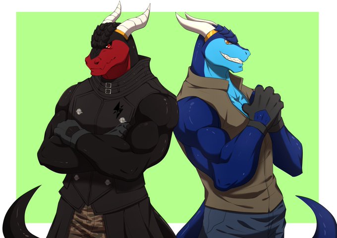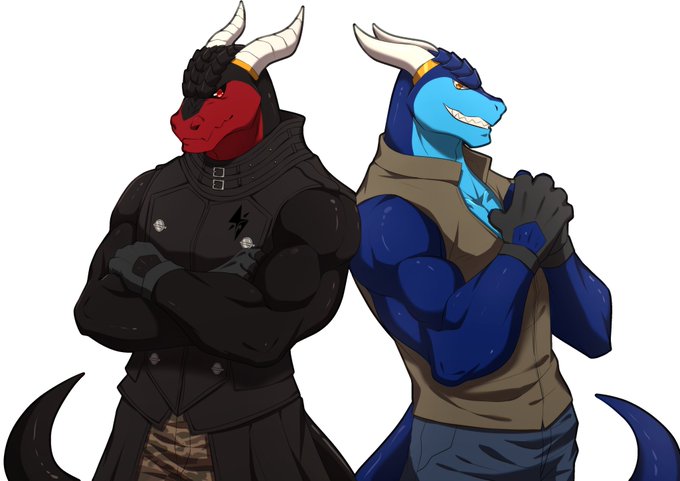 A wonderful commission of my twin dragons being total badasses. Made by @PuTai22. They did a great job on these two. I couldnt be happier seeing them side by side hehe. And for those who recognize the outfit for the red dragon. It's my FF14 glamour for my hrothgar monk.