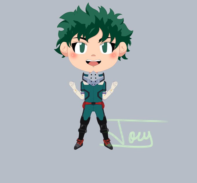 Finished Deku's sticker design ^^ I'll be working on a Todoroki, Bakugou, and Kirishima next.