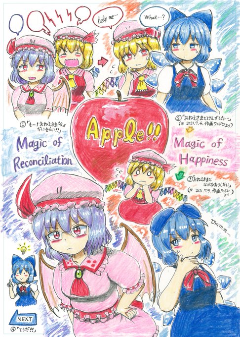 フランちゃんがチルノちゃんのお姉さんになるなんてお話や、レミィさんとケンカして仲直りのためにフランちゃんを手助けするチルノちゃんのお話も描いたことありましたなーと(๑•﹏•)←