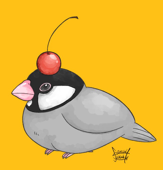 かわいい ブンチョ #イラスト #文鳥 #鳥 #インコ #さくらんぼ #illustration #birds #buncyo #javasparrow