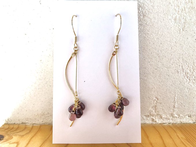 落ち着いた色合いのビーズをベリーみたいにギュッと🍓ウェーブのパーツはスケート選手なところから採りました⛸大人っぽい雰囲気に!