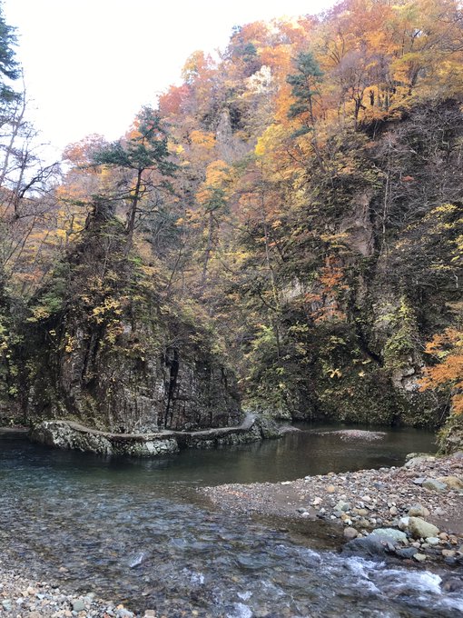 ここの渓流の折れ方と岩肌がたまらないの!