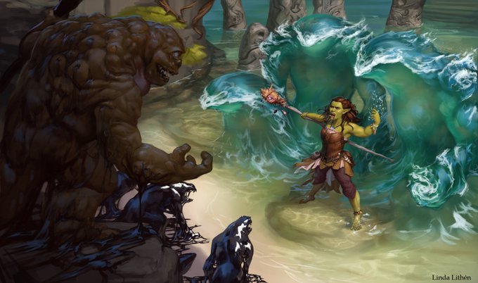 I liked the orc coastal themed druid I sketched a few months ago so did a more finished painting with her. :D Tutorial, PSD, JPEG and process gif will be sent out with my November Patreon package! #artistsontwitter #illustration