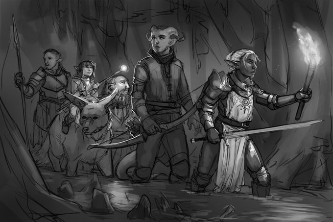 A group of adventurers in a swamp for my weekly #Patreon #sketch :) Be a good party member and give your gnome friend a ride. #artistsontwitter