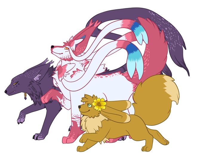 And we also have the whole family. Atash the Espeon, Zemar the Sylveon and Soraya the Eevee. Two brothers and one daughter. ( I still need to draw Mama Rajiya aka Flareon and papa Zaim whosabastard the Umbreon )