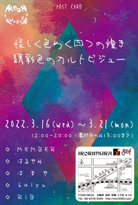 3月16日(水)~3月21日(月)まで、中崎町イロリムラcrefにて、はるやみ定期主催展示 MOONiHARUFA 第7回「誘彩色のカルトビジュー」が開催されます!