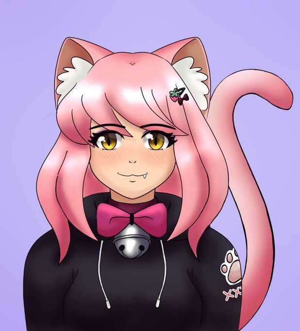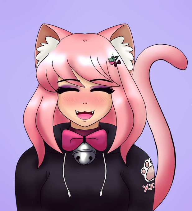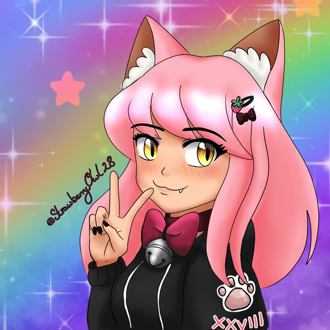 This here is my Strawberry kitty; Mya. 🍓🎀 Which is the face of my Channel when I stream Art Friday nights 10pm AST.