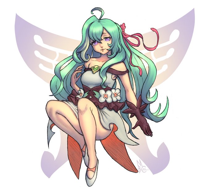 Mint the fairy in her normal and powered up forms. Also... experimenting with a new signature designed by @Kiriska, inspired by Xu Bing's Square Wood Calligraphy!