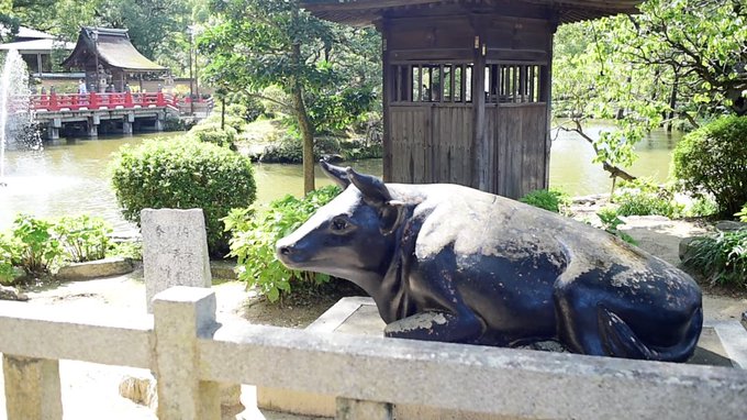 片角の御神牛か。菅原道真公の使いで、格式で言えばオイナリサマを超える神獣として有名らしい。来年の干支とはいえ公式の飛ばしっぶりがすごいな。 #けものフレンズ