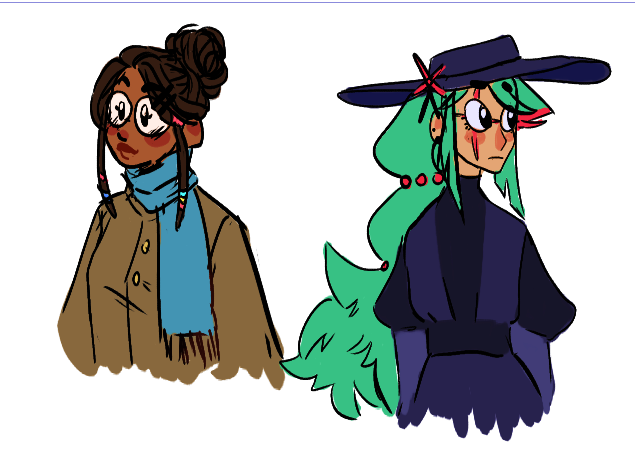Eu pensei em um desenho sobre uma detetive que investiga a morte de uma maga, ai eu desenhei a detetive e a maga :P