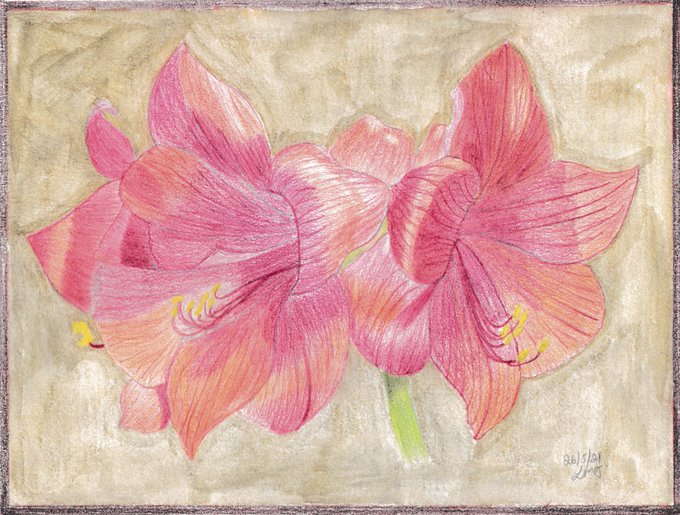 Latest Zoom art class sketch. Amaryllis in derwent watercolour pencils. @derwentart #art #drawing #nature #sketching #Flowers #pencilart #artshare #colouredpencils