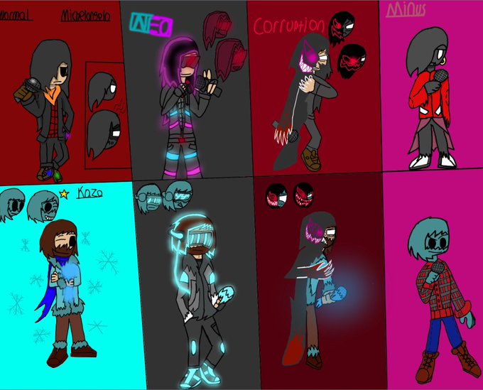 I had finished up Minus Michelangelo and Kazo. Here’s all of the different versions of my Protags, favorites being Neo #FNF #FNFNeo #fnfcorruptionmod #drawing #Art #digitaldrawing #digitalartwork #Digitalart