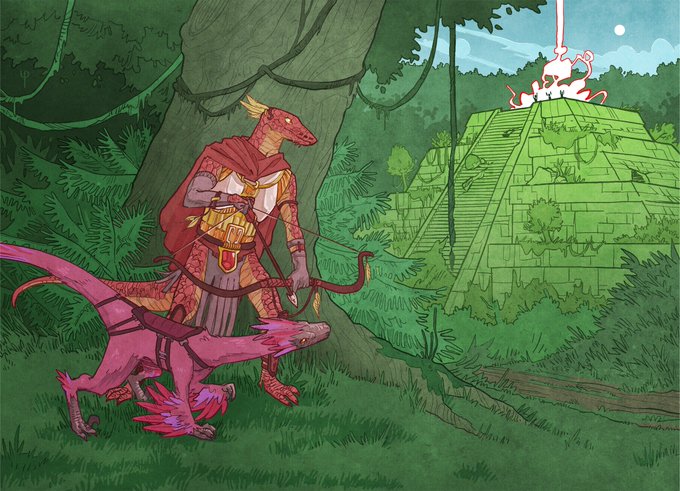Some more #DnD stuff! The first one is the party from our Curse of Strahd campaign (remember Faith?), and the other one is another illustration for the calendar: a Lizardfolk Beast Master with a velociraptor companion (just because that's cool).