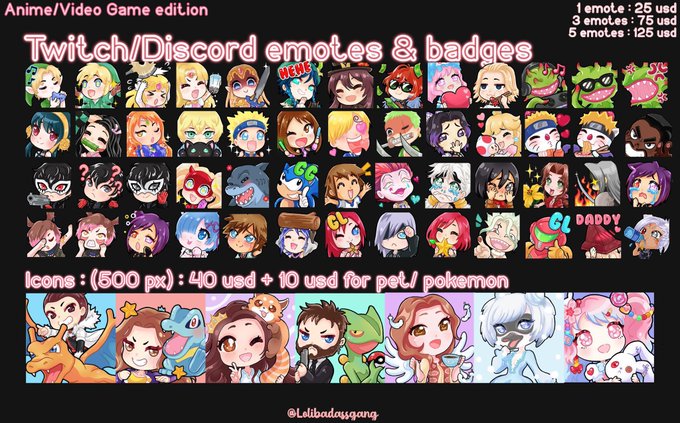 @LamHua Salut Lam je fais des emotes surtout piur des anglophones mais ça me fait toujours plaisir de bosser avec des frenchies alors au cas où voila des exemples o///