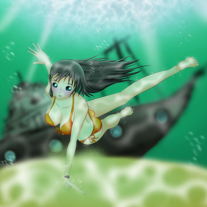 #1week_UW 今回はシュノーケリングを描きました 実はこれ、私の最初のUW絵のリメイクなんですよ