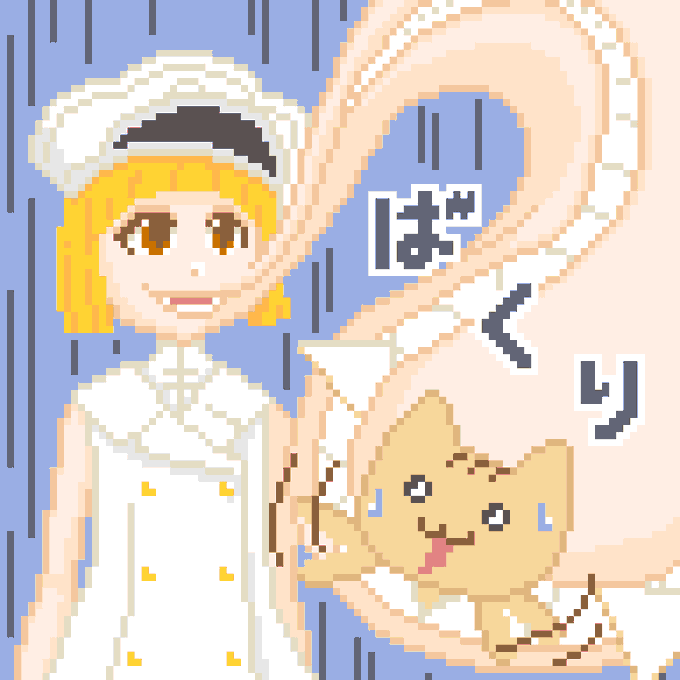 つづきです。 「喚くなよ」 「アニャー!なんでニャー! 裏切ったニャー?!」 多分、これもコミュニケーションの一環。 #リルトット #BLEACH #パルニャン #ドット絵 #pixelart #dotpict