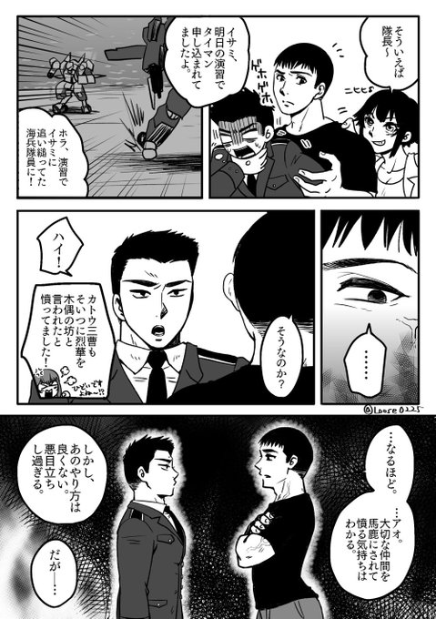 ダイダラサイド漫画。愛機を堕とされて激おこさたちょと飼い主からのGOが出たので好き勝手戦れるとウズウズ🎶するイサ三と炊き付けるヒヒ“キ‼️描いてて楽しかったどぇす❣️✍️🤪🎶ス三スは結構失礼な事言ってるのでそういうナチュラルな傲慢さ好きだけど演習で烈🌸ちゃんの凄さをわからせられてくれ〜🥰