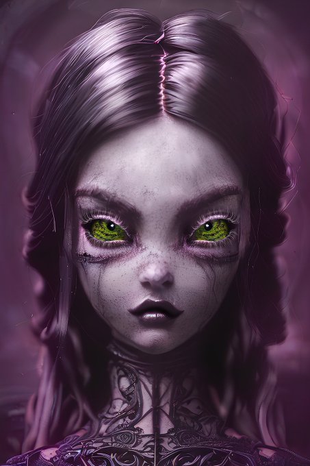 Hello  #NFTCommunity  Here's ""𝕺𝖗𝖊𝖓𝖉𝖆", a cutie of my ⛧ 𝕮𝖗𝖊𝖊𝖕𝖞 𝕯𝖔𝖑𝖑𝖘 ⛧ collection. She can stare you with her lava eyes for hours.