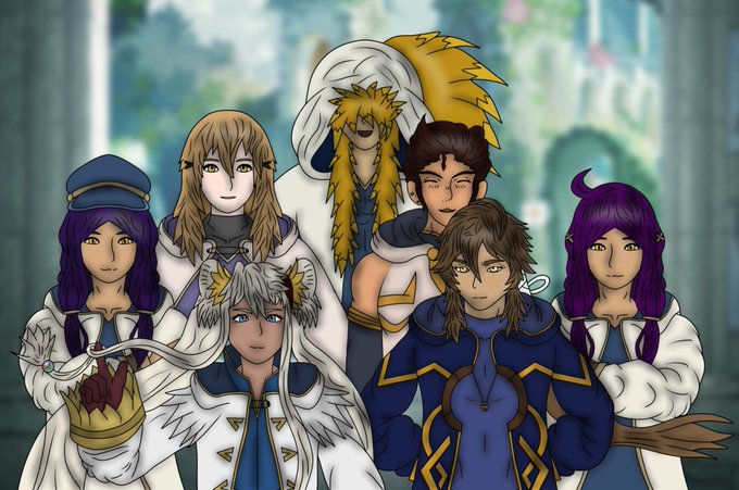 in order: @Clya_Lyren's Thalia, @koolkrisp's Lucius, terrorstoryteller's Samson and a BUNCH OF PEOPLE'S summoner ocs!!