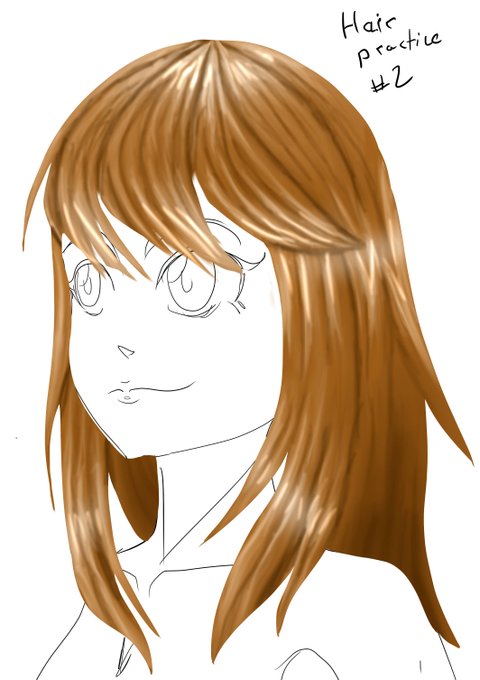 Hair Practice #2 tried more of a painting style but it still looked like the last one. Not a fan. :< whelp going to keep trying until it looks good dang it :C