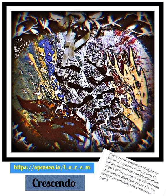 @_frkGL @womanwarriorsky #AvantGarde, inclusive 1/1 set of dgtl #AntiWar #nft #art. Rooted in my mixed media work, it is relevant, translatable, a demand for #Peace & #Unity. Seeks offers from #NFTCommunity folks with means and outreach to put it to work & #StandWithUkraine #PolygonNFT #nft 🧐Pinned link