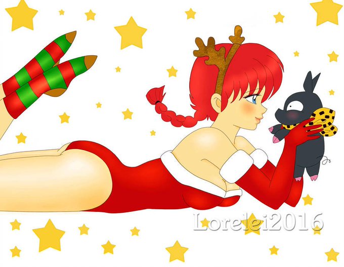 Ranma y Pchan en navidad 🐽🌟🎄 este dibujo es del 2016 pero ya vendrán nuevos 😊