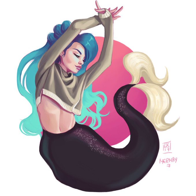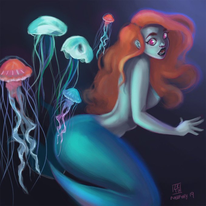 Day 19 of #MerMay #mermay2017 she's wandered into jellyfish territory