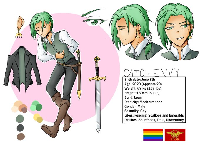 @kanrakuen Cato is a 2,000 year old immortal from Rome. He is a part of Sin 7, the group of antagonists from my story. He is the right-hand man to the leader who he is also in love with. He is the most level-headed of the 7 and is quite smart, sassy and doesn't know how to take a break.