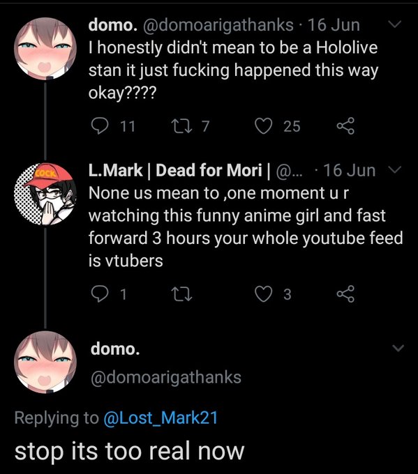 My first interaction and the moment I fell for the Vtuber hole trap set there by @domoarigathanks